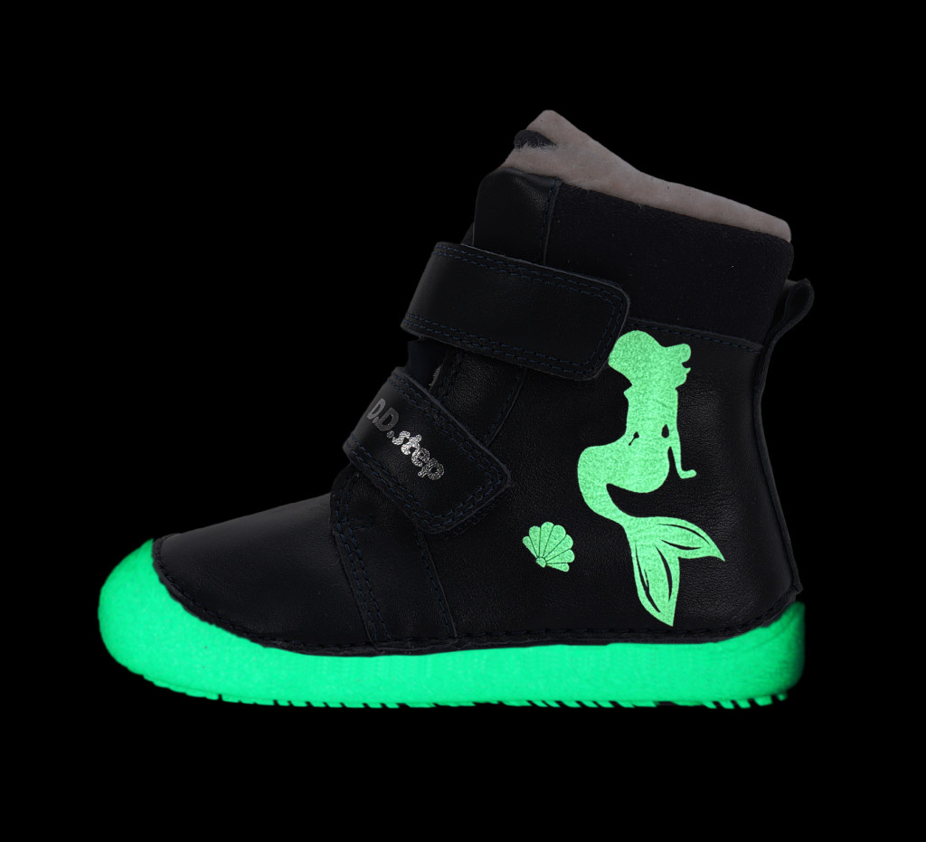 #D.D. Step #DDSTEP #DD STEP #W063-52263 #lány #kislány #Barefoot #fluoreszkáló #sötétben világító #luminescent #tavaszi cipő #sneaker #magasszárú cipő #sellős #sötétkék színű